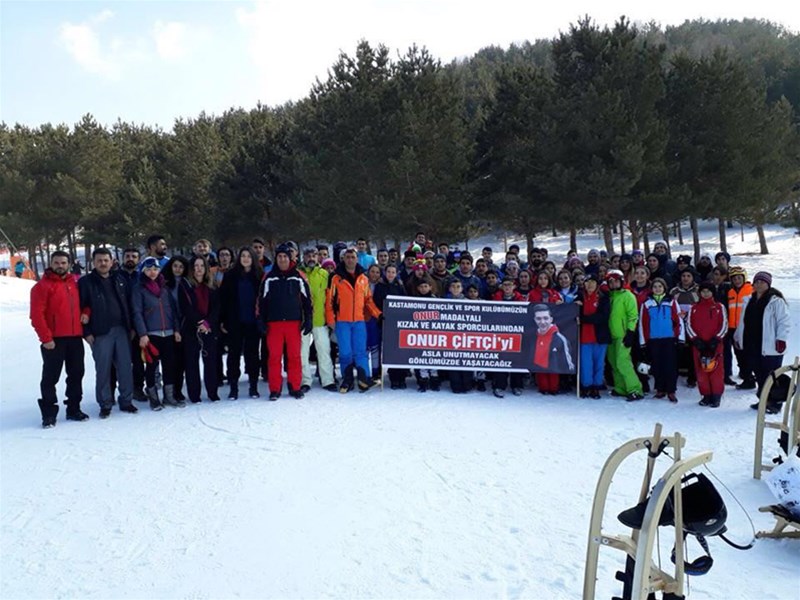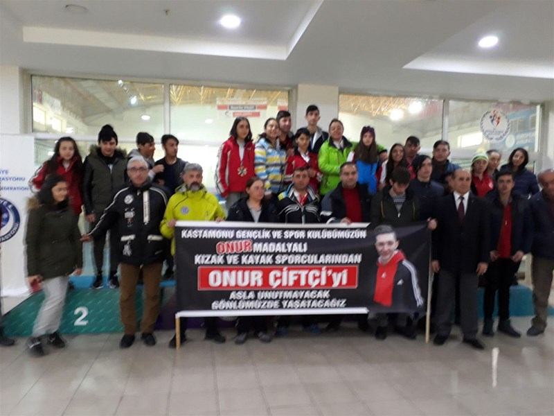 “Kastamonu Gençlik ve Spor Kulübümüzün Onur Madalyalı Kızak ve Kayak Sporcularından Onur Çiftçi’yi Asla Unutmayacak Gönlümüzde Yaşatacağız” yazan pankart şampiyonaya katılan tüm temsilci, idareci ve sporculara duygu dolu anlar yaşattı.