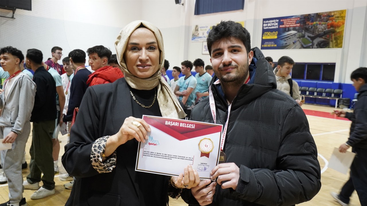 Derece elde eden sporcularımız madalya ve başarı belgelerini, takımlarımız ise kupalarını İl Müdürümüz Sami Kuşcu’nun elinden aldı.